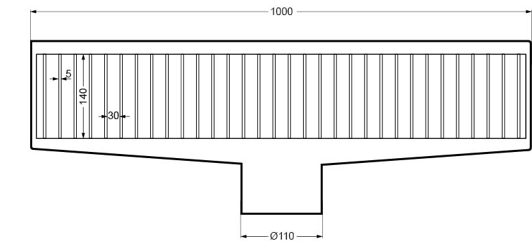 - Afløb: Ø110 mm. Kan også leveres med Ø160, Ø200 og Ø315 afløb.